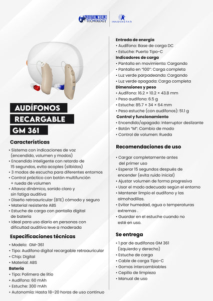 AUDÍFONO GM 361 RECARGABLE